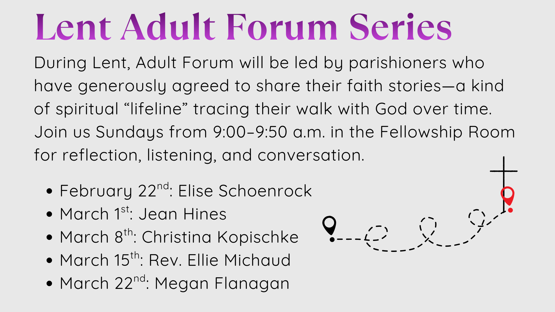 During the season of Lent, Nativity will be hosting a few events. Come back to this page for updates as more events are added.